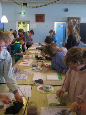 Korte en langere workshops op het gebied van schilderen en knutselen met schoolklassen en andere groepen.