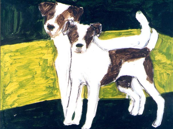 2 Jack Russels, acryl op papier, 60 x 75 cm