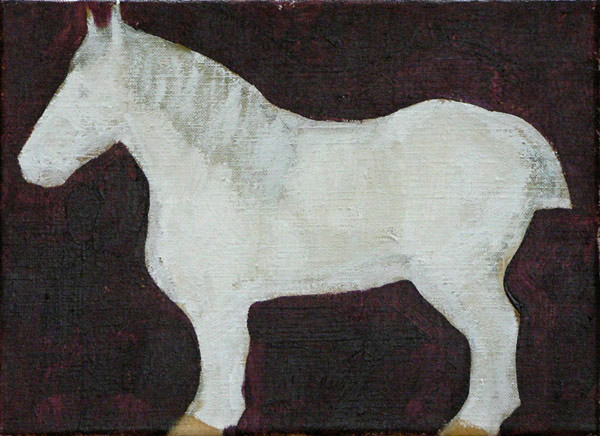 Paard in rood, acryl op doek, 18 x 25 cm