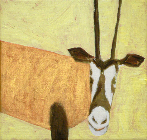 Oryx (klein op geel), acryl op doek, 24 x 25 cm