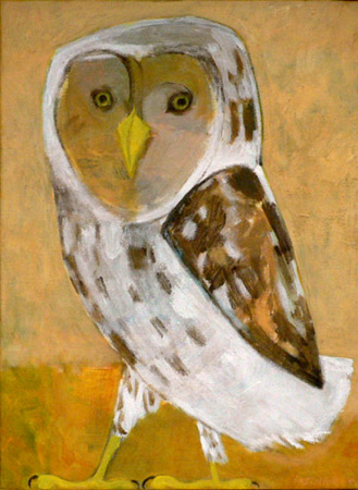 Uil met wit en bruin, acryl op doek, 55 x 40 cm