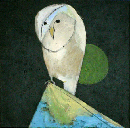Uil op wereldpunt, acryl op doek, 50 x 50 cm