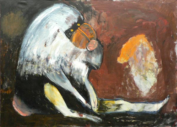 Aap denkend aan Afrika, olieverf op doek, 100 x 140 cm