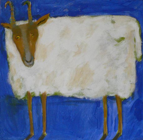 Schaap in blauw, acryl op doek, 40 x 40 cm