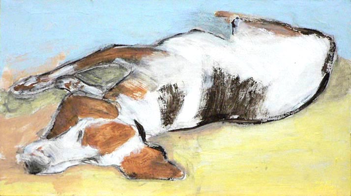 Liggende hond, acryl op paneel, 21,5 x 37,5 cm