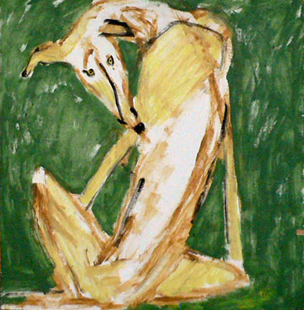 Loup kijkt om, acryl op paneel, 40 x 39 cm