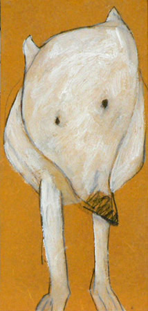 Witte hond met oker, acryl en krijt op paneel, 29 x 13,8 cm