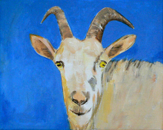 Geit op blauw, acryl op doek, 40 x 50 cm