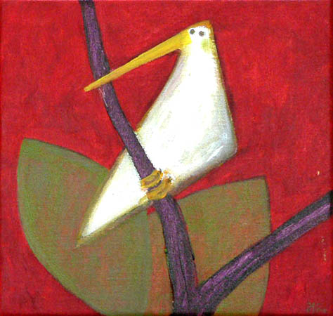 Witte vogel + rood, acryl op doek, 24 x 25 cm