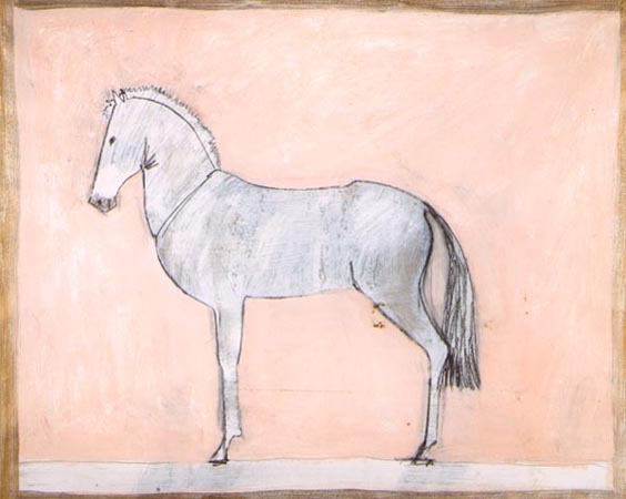 Paard in roze, acryl en krijt, 60 x 75 cm