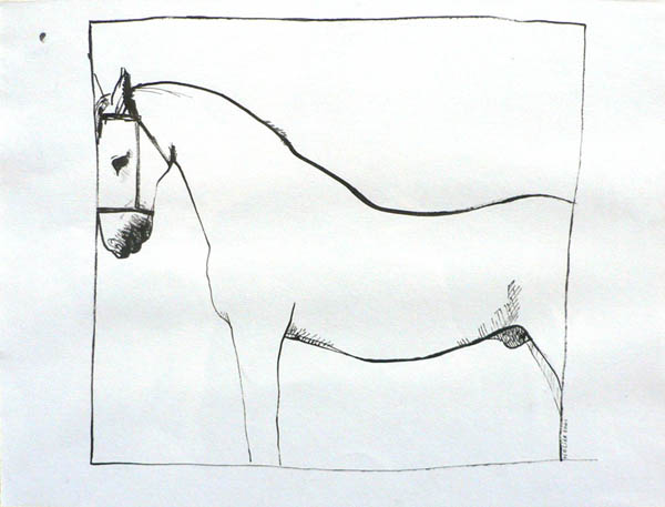 Paard tegen muur, inkt op papier, 25 x 32,5 cm (X)