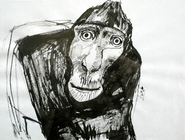 Zwarte aap, inkt op papier, 24 x 32 cm